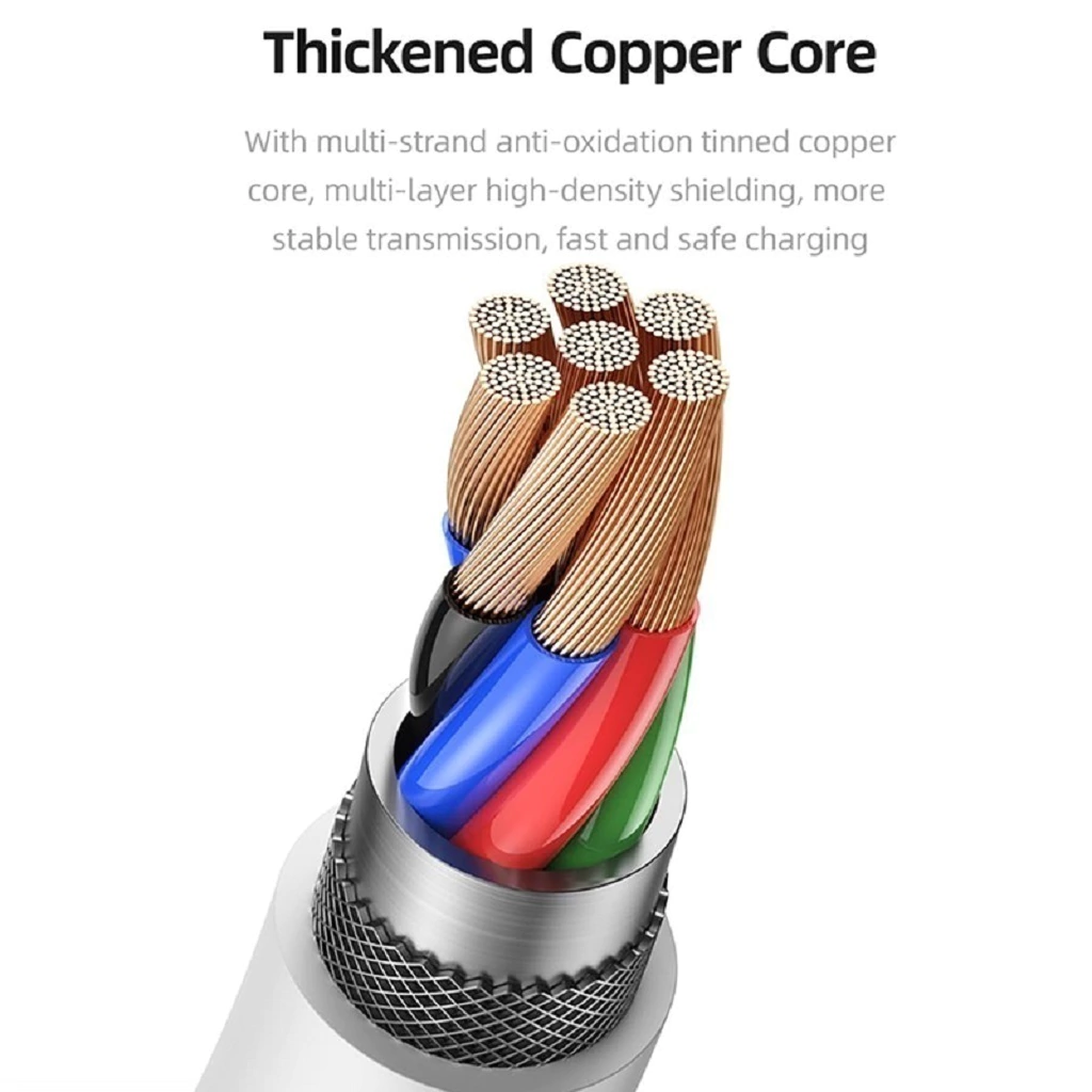 Núcleo de cobre estanhado antioxidação de vários fios, blindagem de alta densidade multicamada, alongamento sem desaceleração, transmissão mais estável, carregamento rápido duradouro sem esquentar.